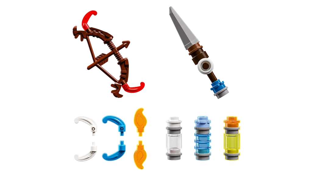 Außerdem sind zwei baubare Roboterkreaturen enthalten: der Shell-Walker mit beweglichen Beinen und Armen, aufklappbaren Klauen und einer abnehmbaren Frachtkapsel und einem Energieschild; und der voll bewegliche Sawtooth, komplett mit aufklappbarem Maul, schwenkbarem Oberkörper und beweglichem Hals, Kopf und Beinen. Um das Set abzurunden, gibt es szenische NebenBauenen, darunter Schilf, ein Lagerfeuer, eine Schatzkiste und mehr.