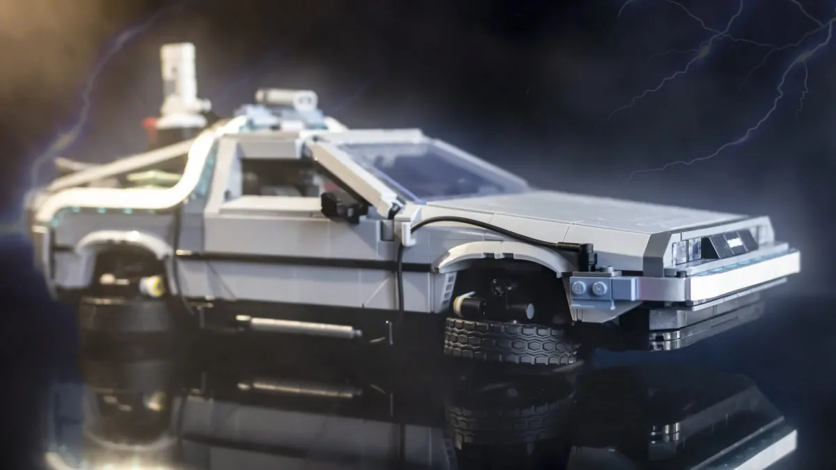 Das bedeutet jedoch nicht, dass das Modell nur gemäß seinem Aussehen in der Mitte der Trilogie konfiguriert werden kann: Tatsächlich enthält es tatsächlich alle Teile, die Sie benötigen, um es für einen der drei Zurück in die Zukunft-Filme anzupassen technisch gesehen ist es ein 3-in-1-LEGO Icons-Set. Weitere Details sind austauschbare Nummernschilder, funktionierende Flügeltüren und sogar ein leuchtender Flux-Kondensator.