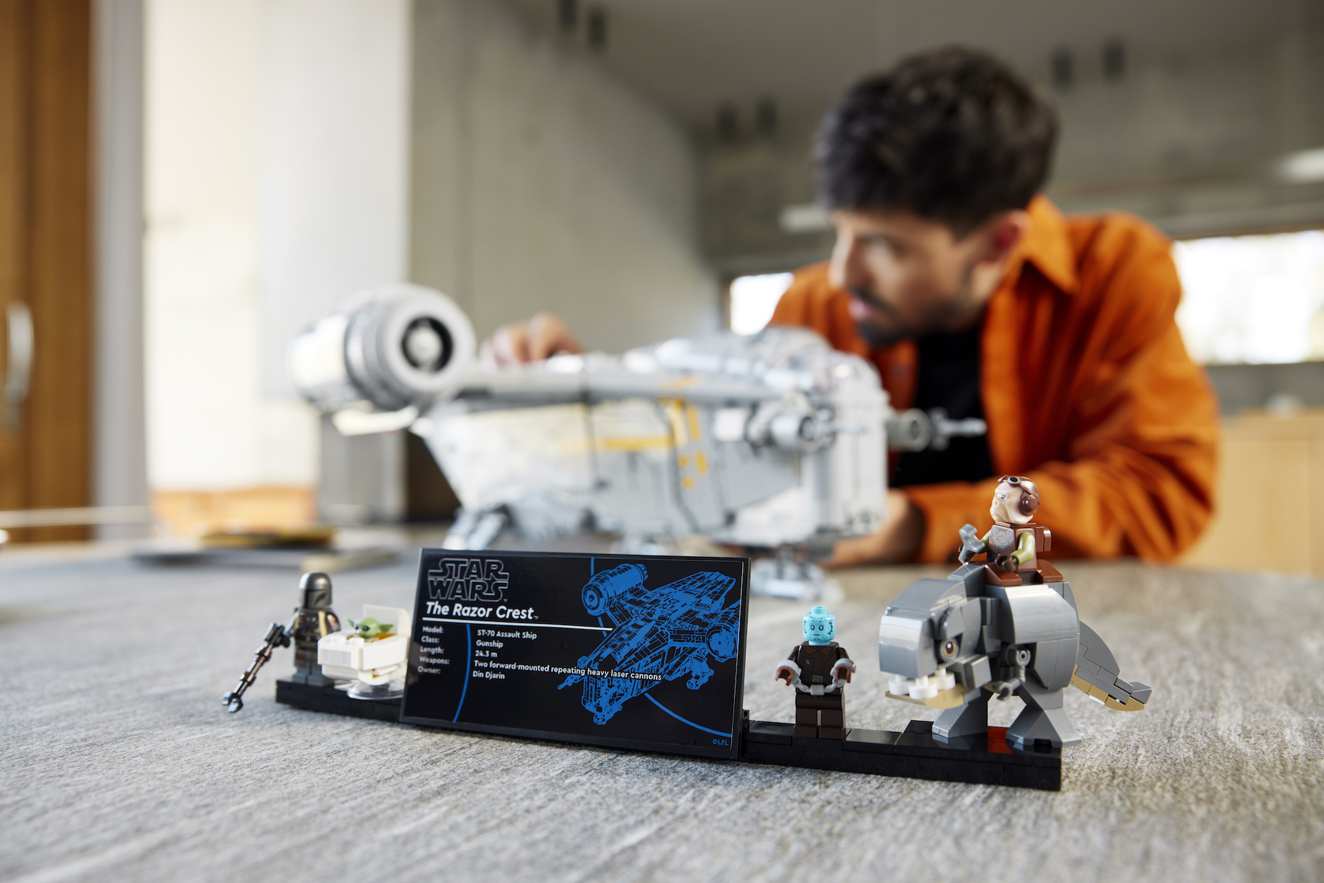 Ein detailliertes und einzigartiges Set wie 75331 Das Rasiermesserwappen muss optimal präsentiert werden und wird mit einer speziellen UCS-Informationstafel und verschiedenen interaktiven Funktionen geliefert, von der hydraulischen Heckklappe, die sich zur Aufbewahrung öffnet, bis hin zu einem Innenraum mit zahlreichen Easter Eggs aus The Mandalorian, wie einem Blaster-Schrank und einer Kohlenstoff-Gefrierkammer und Rettungskapsel. Sie können den Motorblock auch einfach abheben, um diese Highlights im Innenraum freizulegen.