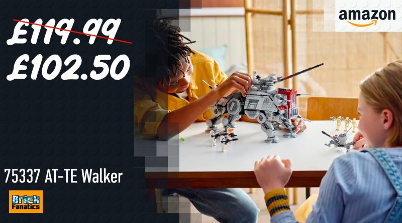 Amazon hat den Preis von gesenkt LEGO Star Wars 75337 AT-TE Walker auf nur 102.50 £, weniger als der übliche Preis von 119.99 £. Mit diesem Rabatt von 18 % sparen Sie insgesamt knapp 14 £ und haben Anspruch auf eine kostenlose Lieferung am nächsten Tag.
