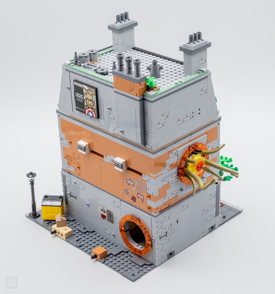 Eine großzügige Anzahl von Minifiguren begleitet das Anwesen, darunter Doctor Strange, Wong, Iron Man, Spider-Man, Ebony Maw, Master Mordo, Sinister Strange, Dead Strange und The Scarlet Witch Marvel Fans viele ikonische Filmszenen aus dem Franchise nachstellen. Gargantos ist auch da, um Doktor Strange und Wong zu bedrohen, während Iron Man und Ebony Maw draußen auf der Straße einen Showdown haben können.