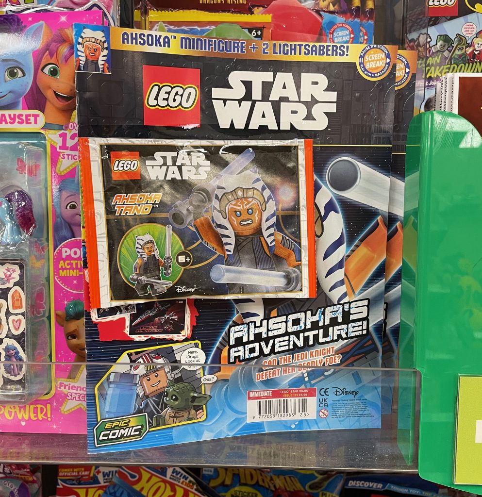 Die aktuelle Ausgabe von Immediate Media's LEGO Star Wars Das Magazin zeigt Ahsoka in ihrem grauen Outfit von Sets, darunter 75362 Ahsoka Tanos T-6 Jedi Shuttleund ist ab sofort bei allen guten Einzelhändlern für 5.99 £ erhältlich. Die Splash-Seite für die Ausgabe des nächsten Monats verrät, dass Din Djarin – oder The Mandalorian – kostenlos mit Ausgabe 126 mitgeliefert wird, die Anfang September in die Regale kommen soll.