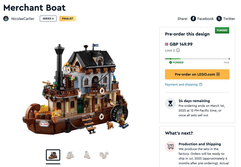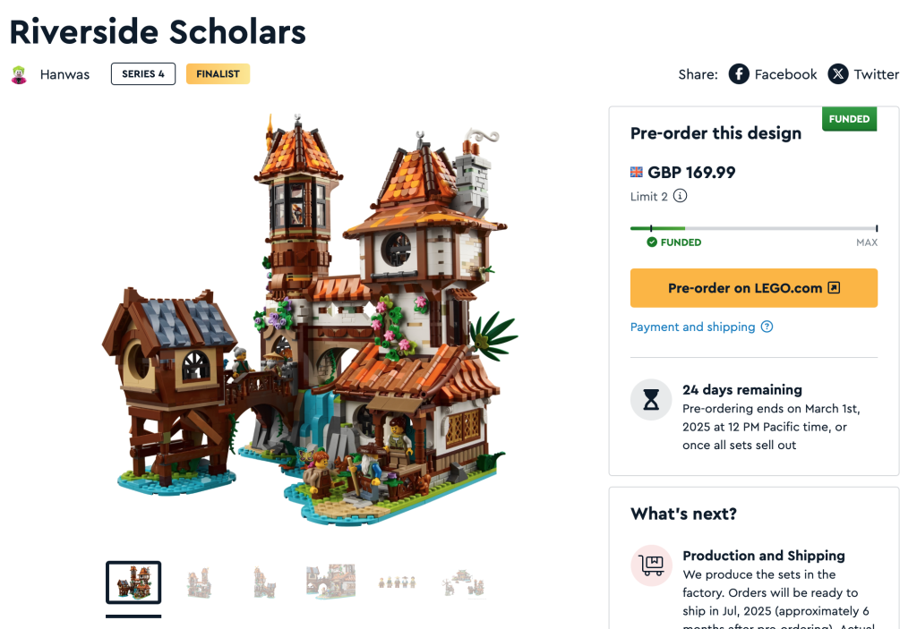 Das Crowdfunding für Serie 4 des BrickLink Designer-Programms endet am 1. März 2025 um 8:12 Uhr GMT/XNUMX:XNUMX Uhr PT oder sobald alle Sets ausverkauft sind. Geh hierher für weitere Informationen zur Funktionsweise des Programms.
