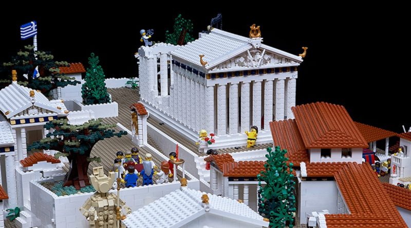 Unerwartete LEGO-Minifigur erscheint im aus Ziegeln geBauenen Parthenon