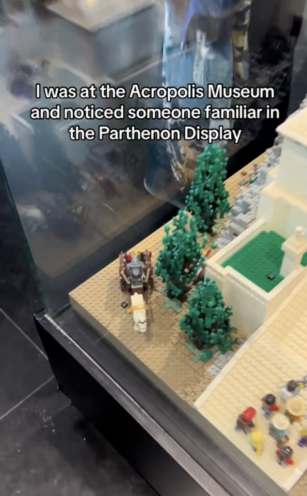 Das Akropolismuseum in Athen, Griechenland, enthält eine Miniaturdarstellung des Parthenon, die aus 120,000 LEGO Steine. Entworfen von Ryan McNaught und das Ergebnis von 300 Arbeitsstunden, ist es in der Kinderecke des Museums zu finden – zusammen mit einem unerwarteten Besucher.
