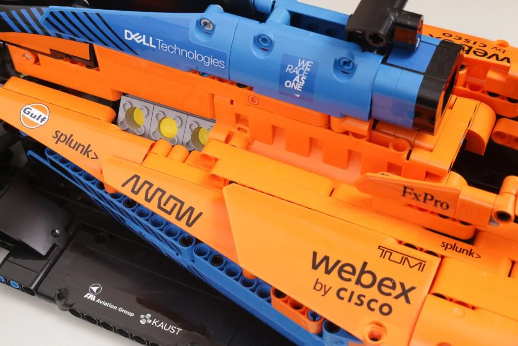 Eine weitere Ähnlichkeit im Vergleich zu 42206 Oracle Red Bull Racing RB20 F1-Auto und 42207 Ferrari SF-24 F1-Auto ist, dass 42228 McLaren MCL39 Das DRS (in Form eines verstellbaren Spoilers) kehrt für eine letzte Saison zurück. Das System wird dieses Jahr nicht in der Formel 1 eingesetzt, lebt aber in LEGO-Form weiter und bietet nach wie vor ein unterhaltsames Spielelement.