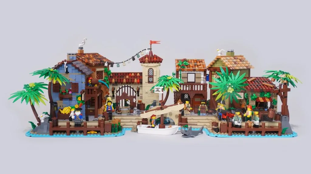 LEGO Display-Sets basierend auf klassisch Themen sind ungewöhnlich, aber Serie 5 des LEGO BrickLink Designer Programms bietet einige effiziente Optionen für Sammler mit vielen Minifiguren zum Ausstellen. Neben Abenteuer in Siebenbürgen für Monster, Abenteurer und Vampire, Die Diebe von Tortuga ist perfekt für LEGO Pirates und sollte auch für die kommenden One Piece-Minifiguren gut sein.